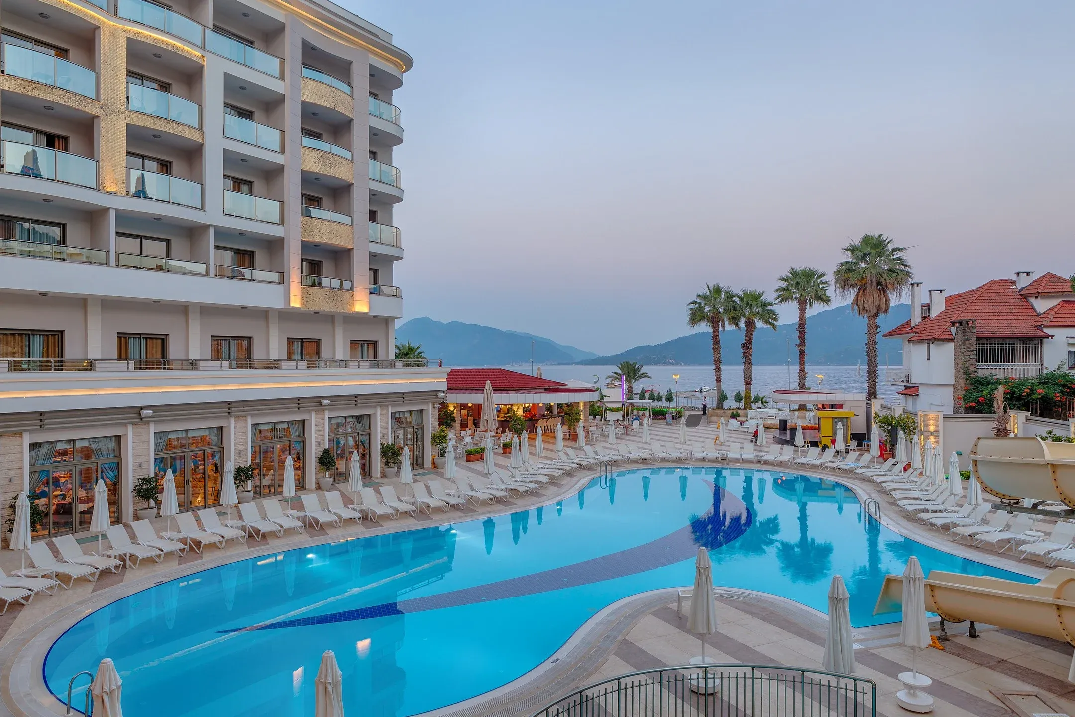 Denize sıfır olan tesisin özel plajında havlu ve şemsiye hizmeti ücretsiz olarak veriliyor. Denize alternatif arayanlar için tesiste geniş bir güneşlenme terası ve açık yüzme havuzu mevcut. Tesisin SPA merkezinde huzurlu bir deneyim yaşamak isteyenler için pek çok bakım ve...
